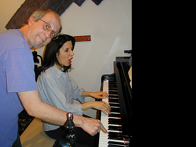 Marty Buttwinick lends a “helping hand” to Gigi Boratgis during the rehearsal for Marty’s jULIA eTUDES (no… we did not leave the Caps Lock key on–that’s how Marty spells it!).